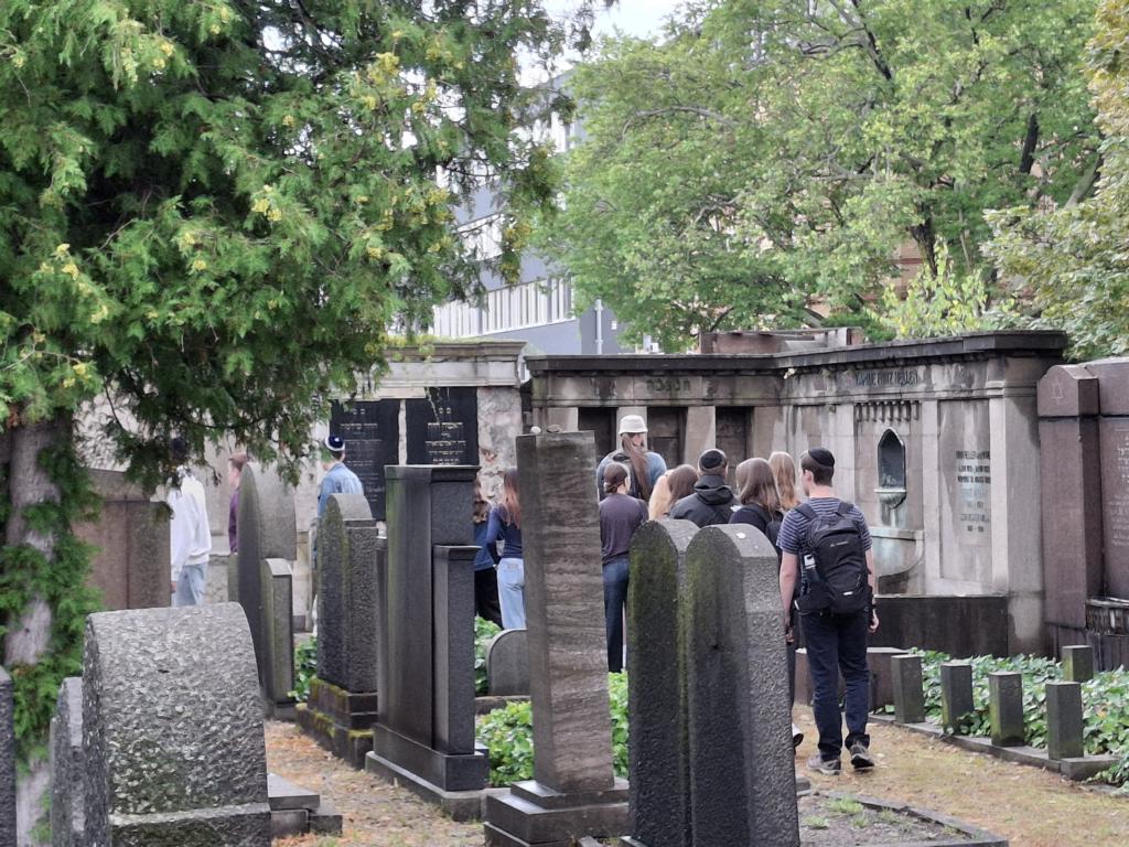 Das erste Zwischenziel der Fahrt war Dresden. Dresden bot viele eindrückliche Erfahrungen. Sei es der Besuch des jüdischen Friedhofs und seiner interessanten und bewegten Geschichte als auch die Spuren Erich Kästners in der Stadt. Am Abend, vor der Weiterreise nach Polen, bereitete sich die Gruppe nach der Reflexion auf die kommenden Tage vor. Ein Teil des Films „Schindler’s Liste“ wurde gemeinsam geschaut und ein erster Austausch über Eindrücke erfolgte.